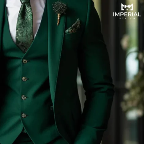 3 Piece Deep Green Men’s Suit – Single-Breasted Slim Fit Jacket & Trousers and Vest