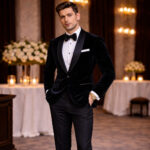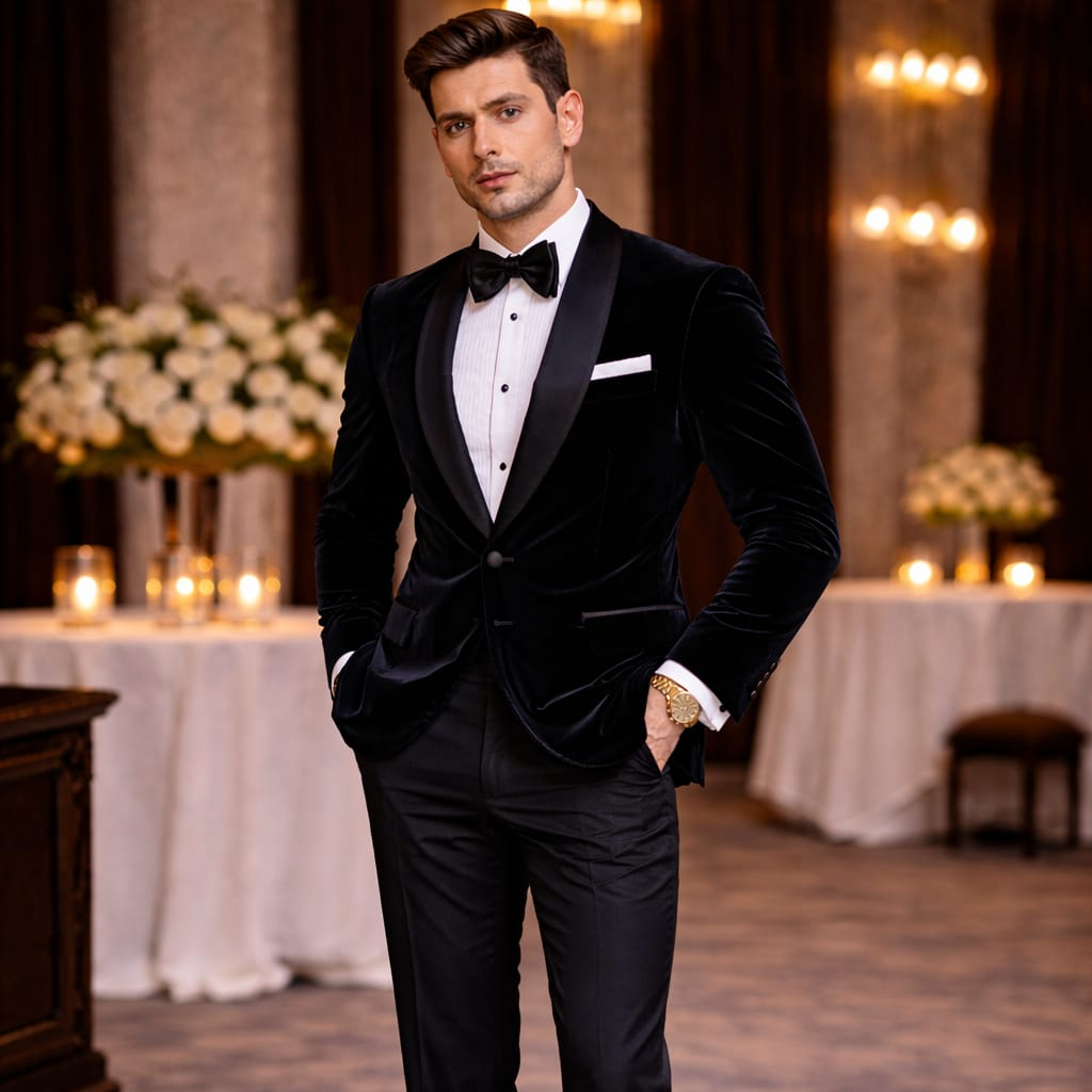 The Black Three Piece Tuxedo is the definitive icon of prestige, designed for the man who understands that true style is found in timeless perfection. This ensemble is the gold standard for Black Tie weddings, Gala awards, and Red Carpet events, where a legendary appearance is the only option. The deep, light absorbing black fabric creates a sharp, high contrast silhouette that radiates elite sophistication under the bright lights of a Prom night or a formal evening ceremony.