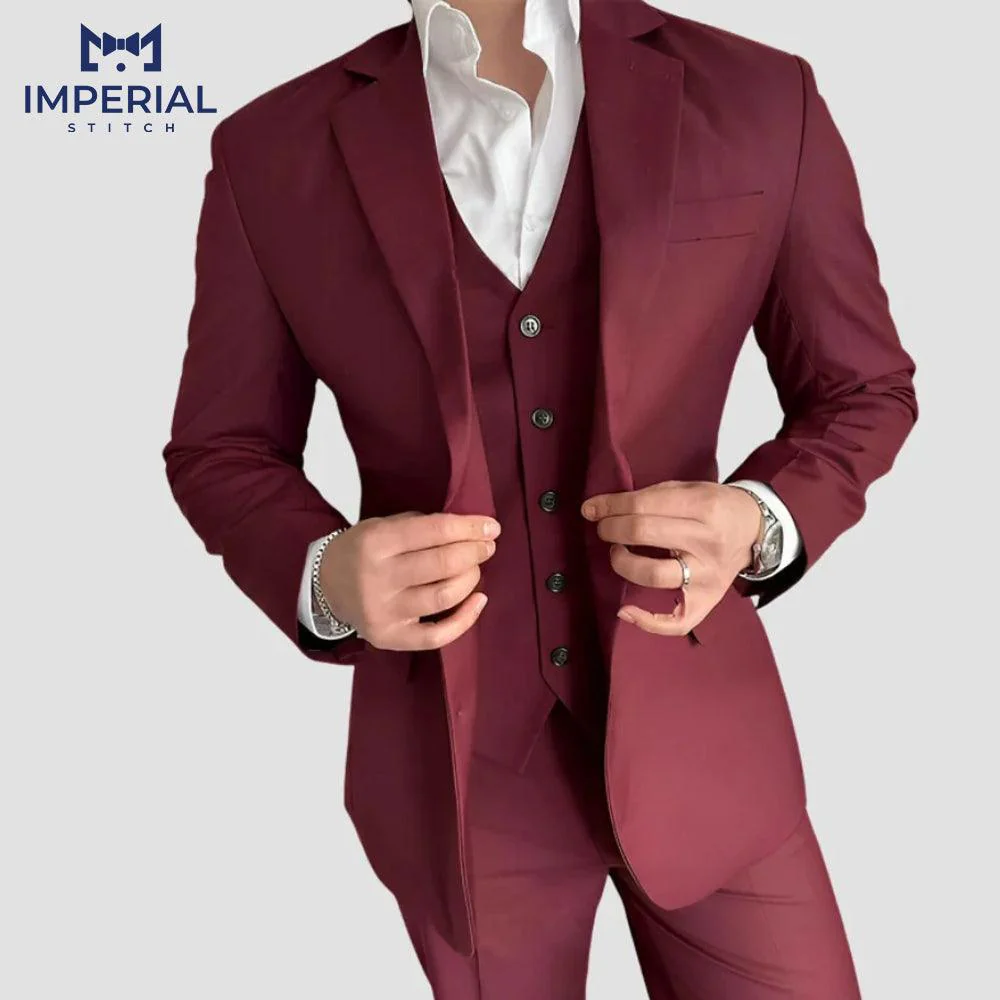 Burgundy 3-Piece Suit for Men – Elegant & Stylish Formalwear