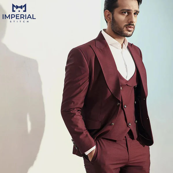 Classy Three Piece Burgundy Suit Wedding Men – Single Breasted