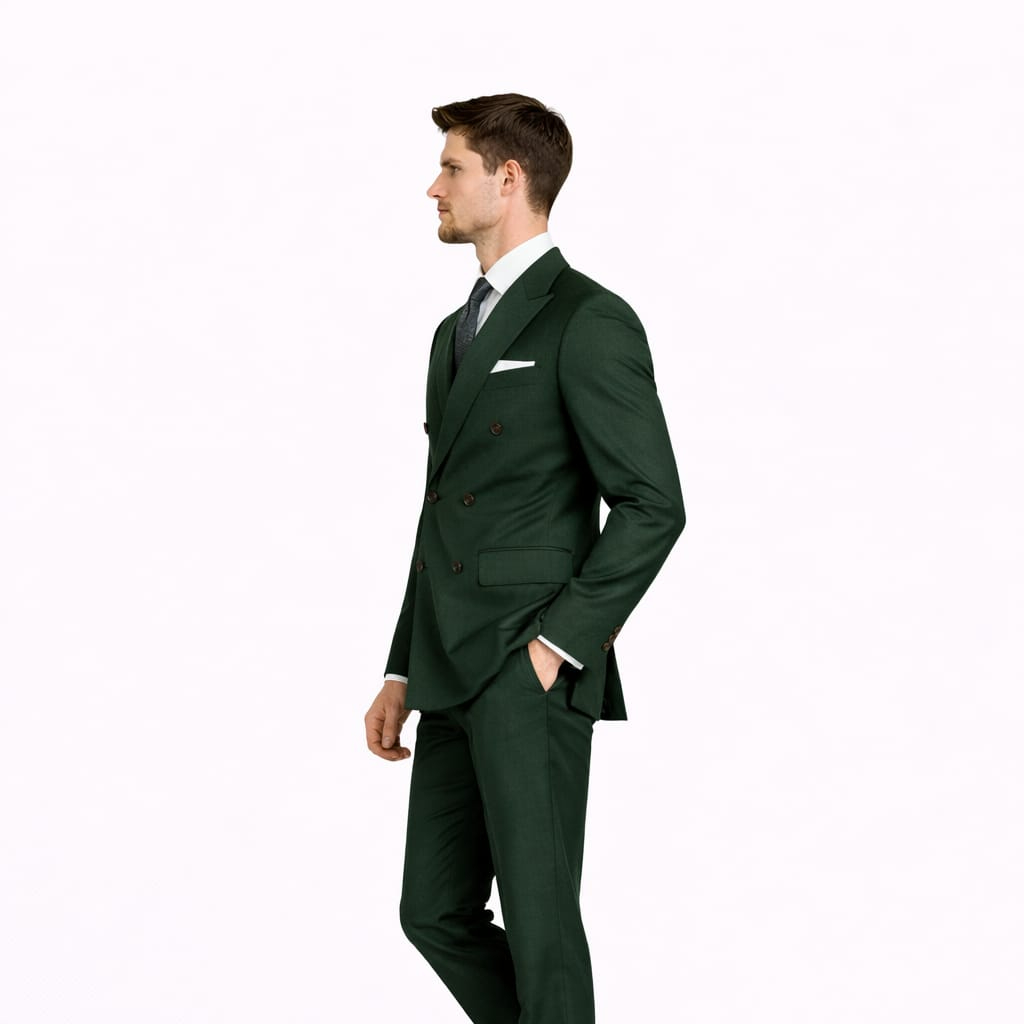 The Green Double Breasted Two Piece Suit offers a refreshing and charismatic departure from traditional formal wear. This garment enables you to project an image of confident individuality and modern refinement at outdoor gala events, spring weddings, or high profile creative summits. The lush green shade provides a vibrant visual appeal that feels both sophisticated and energetic.