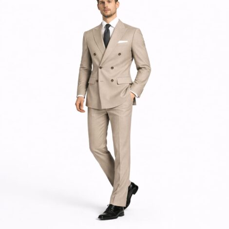 confident in this light tan suit. This is the kind of outfit you reach for when the weather is warm and
