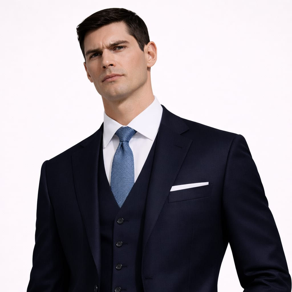 masterclass in modern tailoring. This ensemble allows you to command the room with a blend of classic charm and contemporary sharp lines, making it the perfect choice for high stakes boardroom meetings, elegant wedding ceremonies, or black tie social events. The deep, midnight navy hue offers a timeless versatility that transitions seamlessly from daylight functions to evening galas.