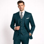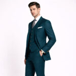 The Teal Blue Single Breasted Three Piece Suit offers a striking balance between