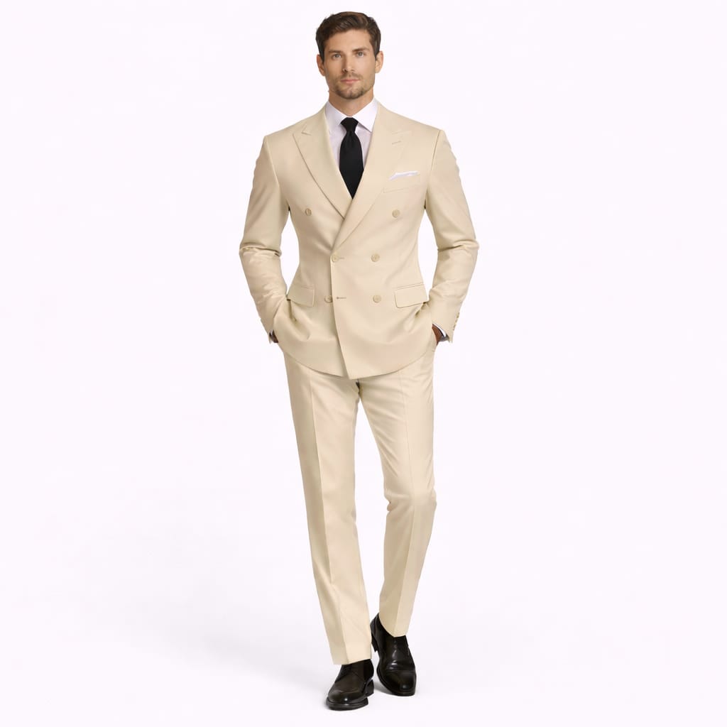 The Beige Double Breasted Two Piece Suit provides a light and sophisticated aesthetic for the modern wardrobe. This suit helps you project a refined and approachable image during daytime weddings, summer events, or upscale professional gatherings. The neutral beige tone offers a classic look that remains versatile across various social settings while ensuring you stand out with polished elegance.