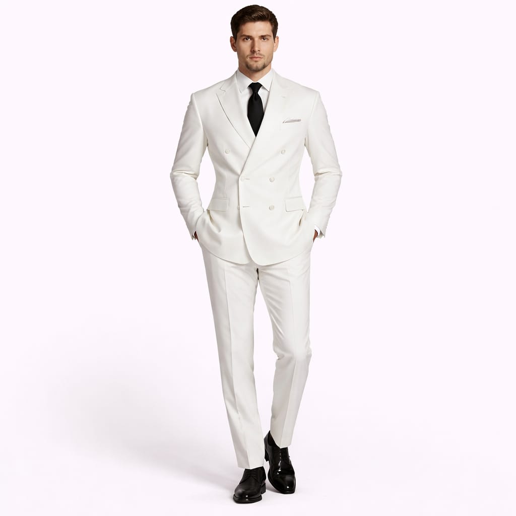 The Off White Double Breasted Two Piece Suit offers a masterclass in summer elegance and high end tailoring. This ensemble empowers you to project an image of pure confidence and sophisticated charm at prestigious garden parties, coastal weddings, or exclusive daytime events. The creamy off white tone provides a softer and more approachable alternative to stark white while maintaining a crisp and professional edge.
