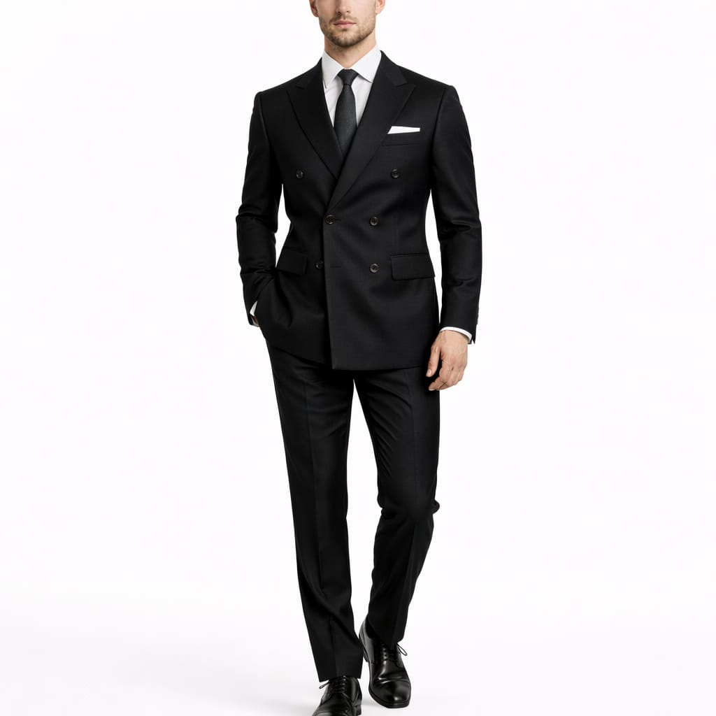 Home » Products » The Solid Black Double Breasted Two Piece Suit