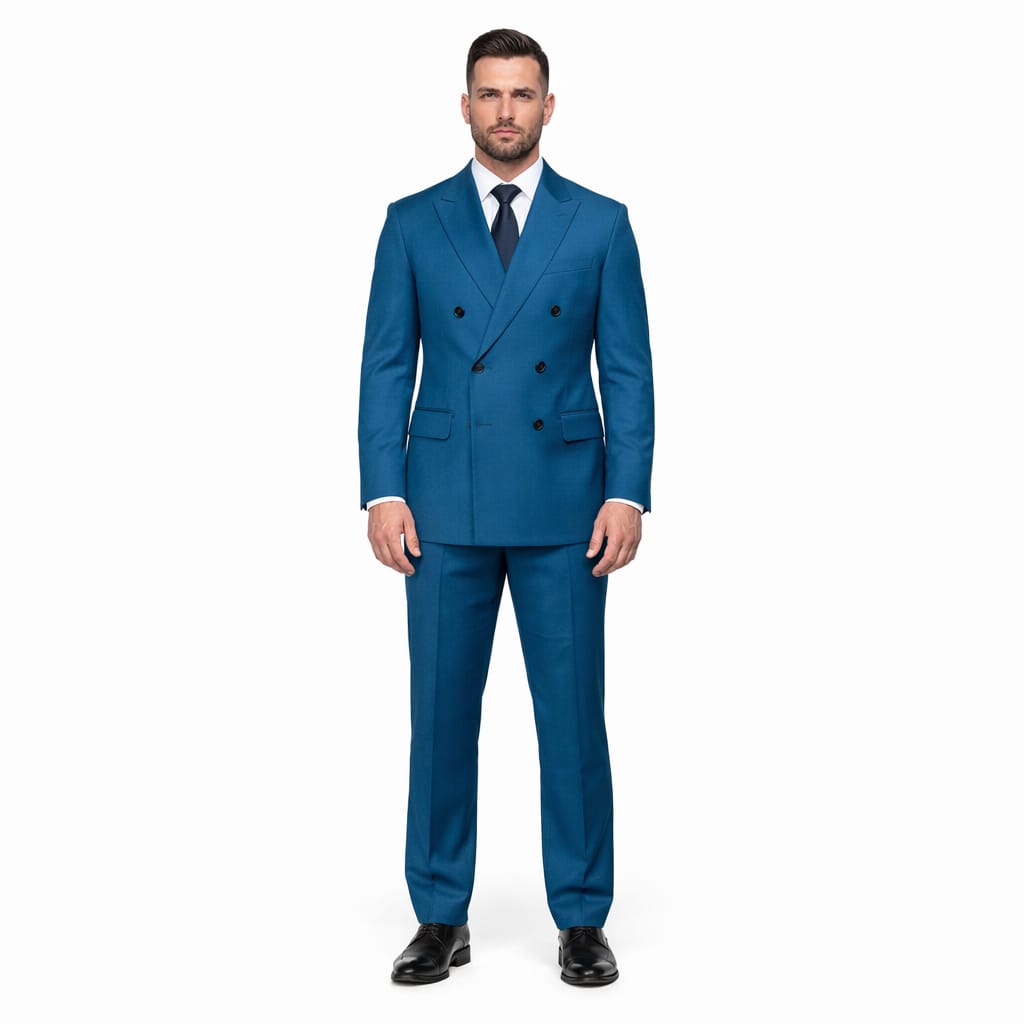 The Teal Blue Double Breasted Two Piece Suit brings a vibrant and sophisticated energy to your formal rotation. This suit helps you project a unique sense of style and confidence during gala events, creative business meetings, or wedding celebrations. The rich teal blue shade offers a modern alternative to standard blues and ensures you maintain a polished and memorable presence.