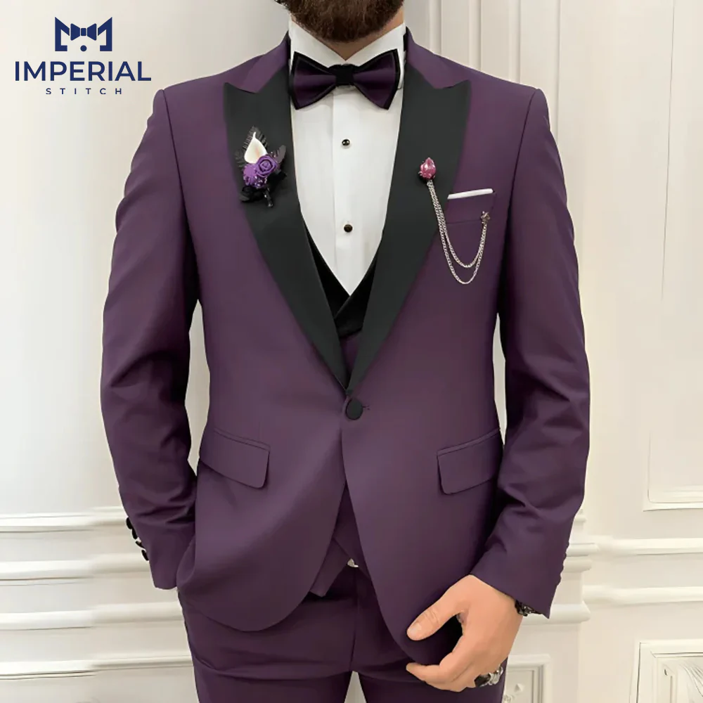 Three Piece Men’s Purple Slim Fit Suit – Elegant Formalwear for All Occasions