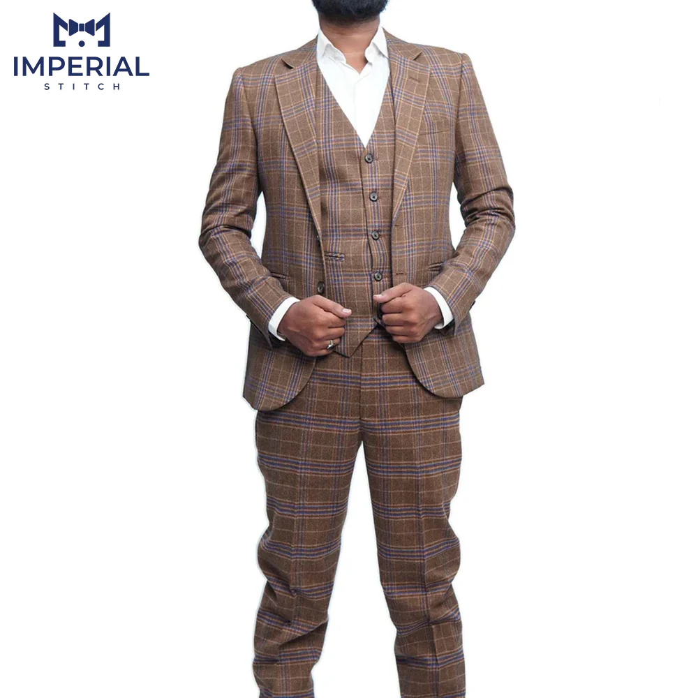 Tweed Fabric Camel Brown 3 Piece Wedding Suit – Classic & Timeless Formalwear